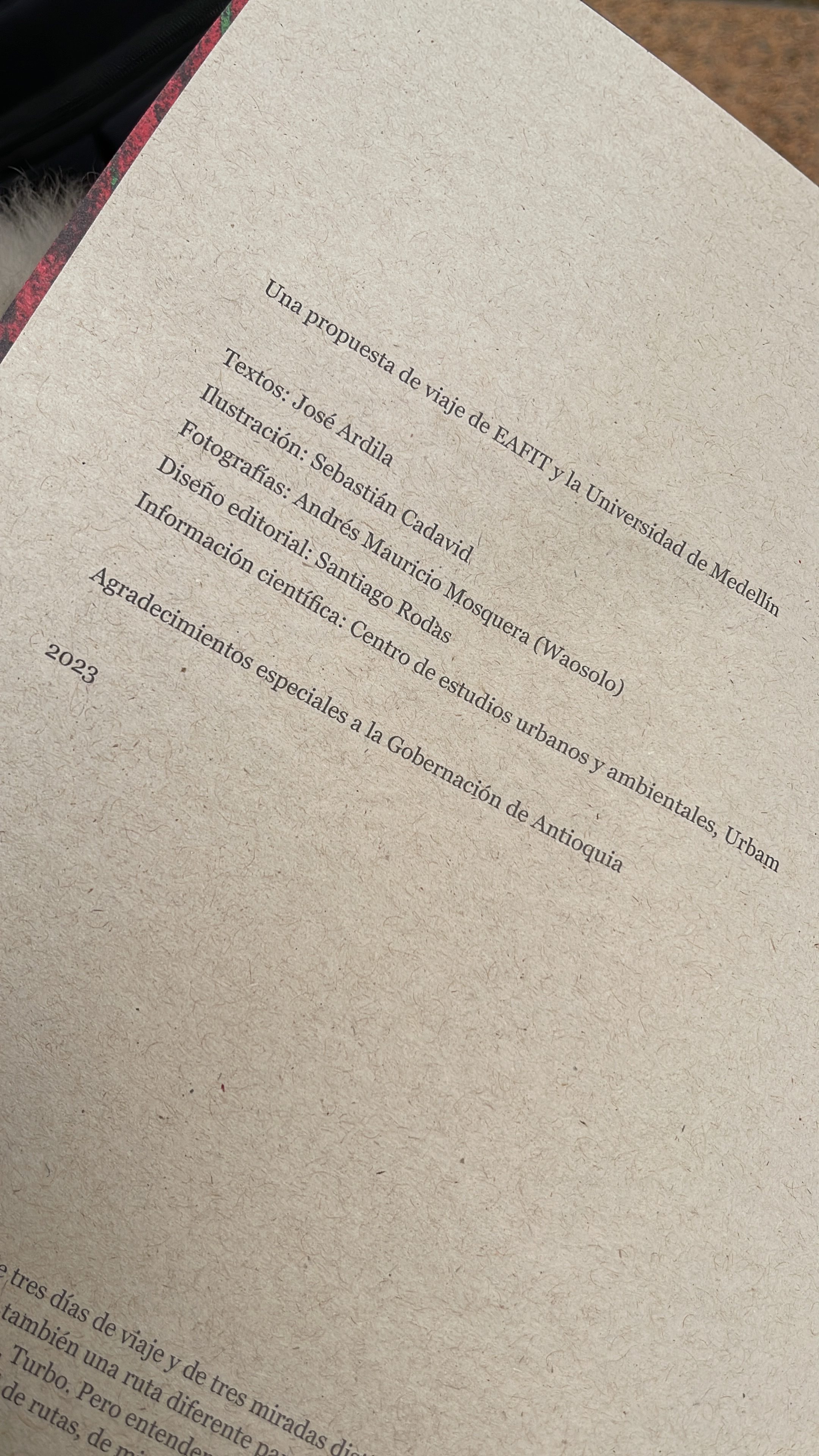 “Tres derivas por el Río Atrato. Una propuesta de viaje de EAFIT y la Universidad de Medellín, materializada en una revista que recoge la experiencia de un escritor, un ilustrador y un fotógrafo en 2023.